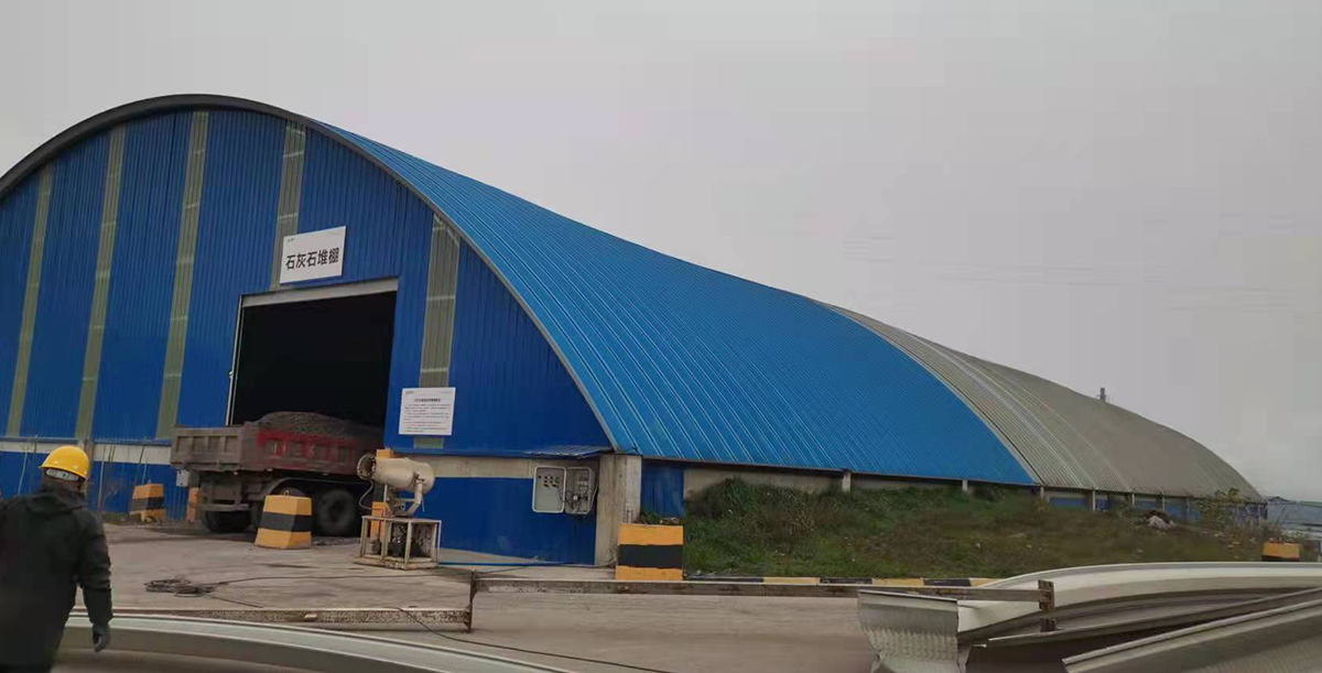 四川永祥石灰石原矿堆棚延伸密闭施工(拱形彩钢屋面)38m跨度
